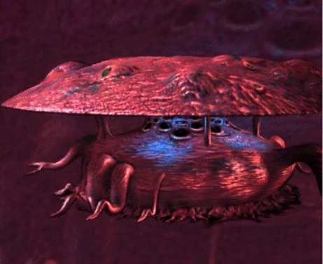 Entire alien city is an enclosed living organism. Ten large protrusions are connected by a tract that resembles an umbilical cord. The protrusions act as different facilities and have various functions that keeps the alien brood alive.