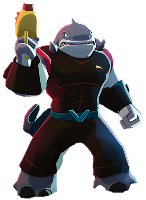 He is the archenemy of Lilo and Stitch. He is an extremely large and muscular alien (although he has a belly), with a gruff personality. Gantu resembles a bipedal whale or shark, has blue eyes and pillar-like legs, and wears a black battle shirt and black shorts. When he is seen by people on Hawaii, he sometimes tries to pass himself off as a person from Samoa.