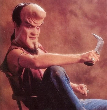 Kinski appears to be a regular human being in every aspect except for his face. Kinski's entire head is shaped like the crescent moon.