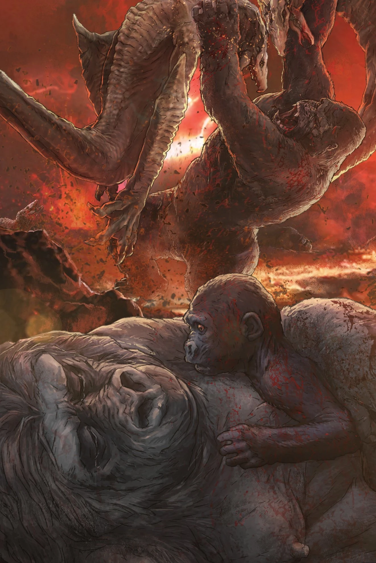 Subsequently, both adults were overwhelmed and killed by the Skullcrawlers, leaving the beast who would become known as King Kong to raise himself and continue the battle as the last remaining member of his species.