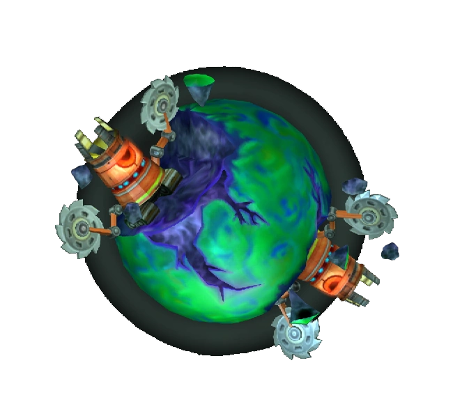 Planet Wisp is a very small celestial body that consists almost entirely of pristine greenlands, forests and mountains. During the events of Sonic Colours, however, Dr. Eggman built a factory on the planet and sent his Badnik hordes to capture the native Wisps so that he could use their Hyper-go-on energy to power his latest world domination scheme. The factory is a twisted maze of high-tech industrial machinery including large gears, huge buzz-saws, missile launchers and mine carts carrying various minerals and resources used in Eggman's construction efforts. The factory would be destroyed by Sonic when he separated Planet Wisp from Eggman's Incredible Interstellar Amusement Park.