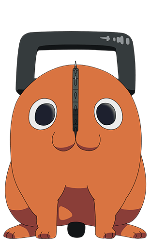 Pochita is a dog-like creature with a chainsaw on his front, big eyes and a round body. His tails is like that of a chainsaw cord . Handles emerge from his body allowing him to be wielded like a chainsaw.