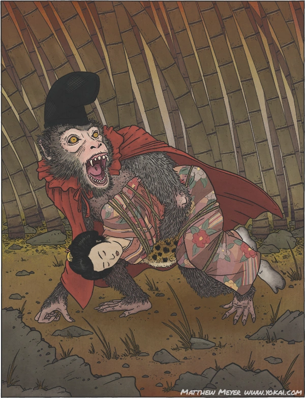A Sarugami is an exceptionally clever and dangerous monkey that gains human level intelligence as well as yokai powers, such as the ability to speak and carry weapons.