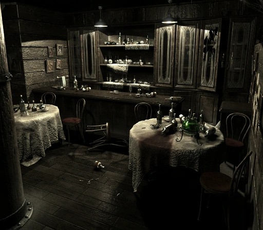 - Living Room - Also called the Smoking Room due to the stench of tobacco lingering in the air. A Remingtom M870 shotgun was mounted on the far wall and removing it activated a trap in the adjacent room.